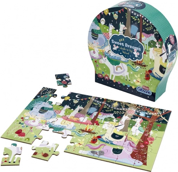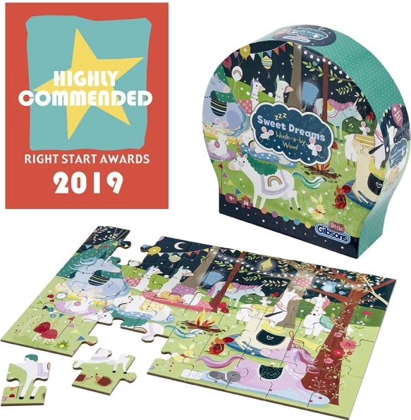 Puzzel Zoete Dromen met 36 stukjes biedt een magische reis naar een wereld van dromen vol lama's en eenhoorns. Ideaal voor het stimuleren van het geheugen en de ontwikkeling van de verbeeldingskracht van kinderen.