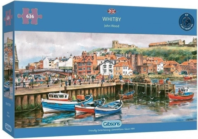 Ontdek de schoonheid van Whitby in Yorkshire met deze panoramische puzzel van het merk Gibsons. Het samenstellen van deze puzzel met 636 stukjes brengt je naar de schilderachtige haven, waar de ruïne van de abdij van St. Hilda boven de drukke straten op de rotsen van East Cliff uittorent.