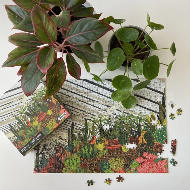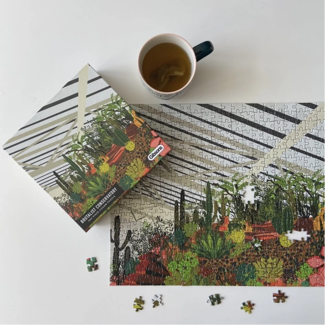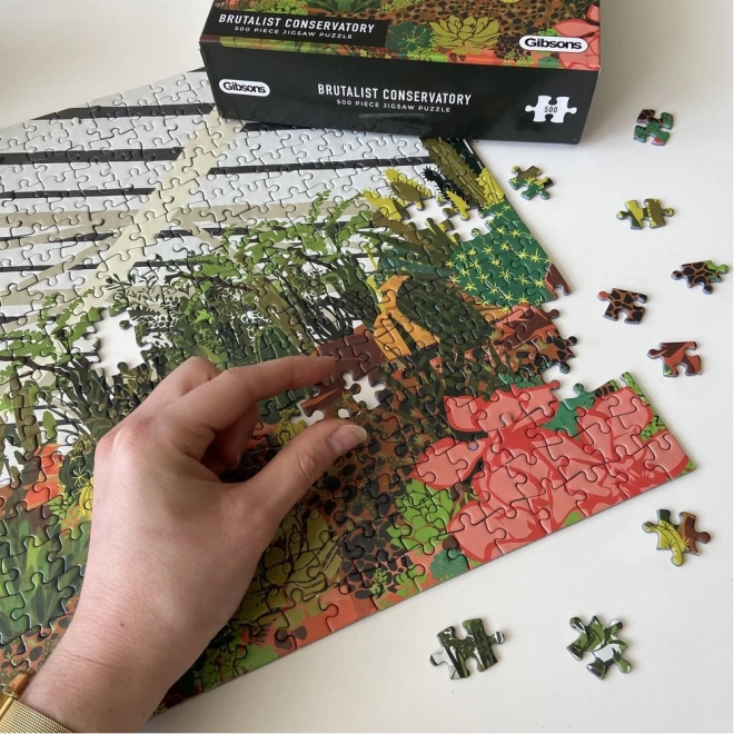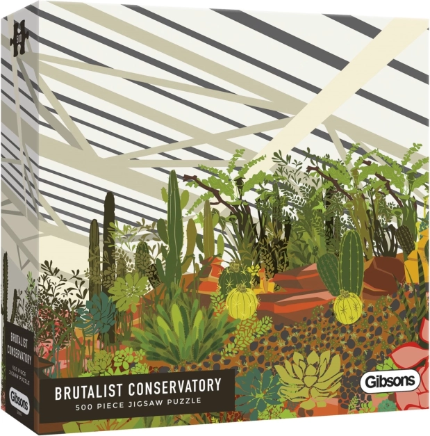 Ontdek de charme van de stedelijke jungle met een puzzel van het merk GIBSONS. De illustratie toont de wintertuin in het Londense Barbican met tropische planten, loofbomen en cactussen. Het leggen van 500 stukjes biedt een ontspannende ervaring, hoogwaardige afwerking en een voorbeeld in de doos voor makkelijker puzzelen.