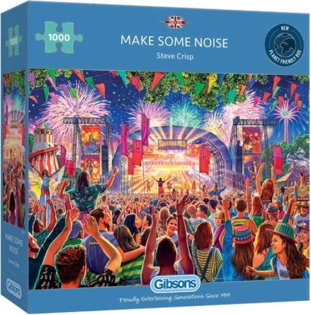 Gibsons puzzel Maak wat lawaai, 1000 stukjes met voorbeeldposter. Hoogwaardige Britse kwaliteit, formaat na leggen 68 × 49 cm. Een uitstekende keuze voor puzzelliefhebbers.