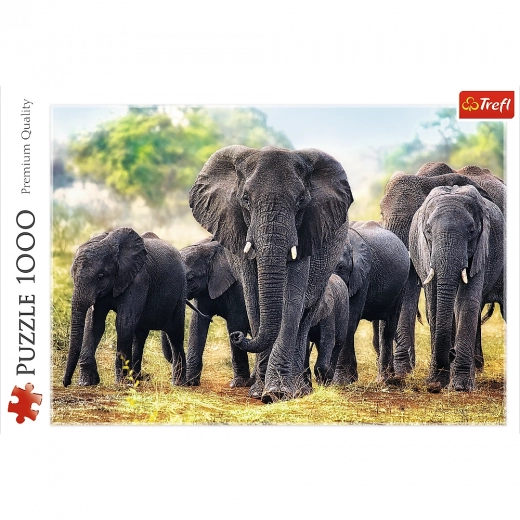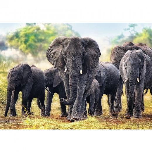 Ontdek de schoonheid van de wilde natuur met TREFL-puzzels met majestueuze Afrikaanse olifanten. Dankzij de nauwkeurig uitgesneden stukjes en de diepe kleuren is het leggen soepel en leuk, en komt het eindresultaat tot zijn recht in elk interieur.