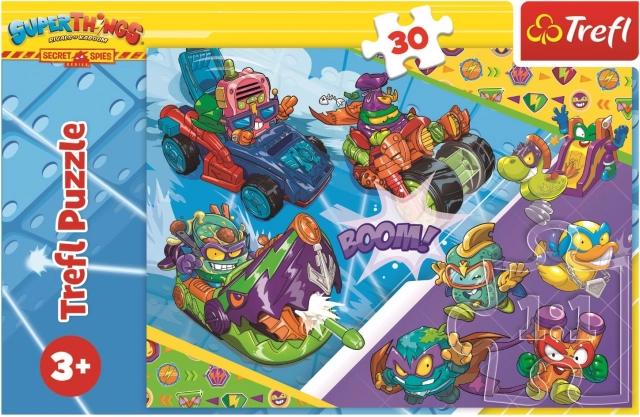 Kinderpuzzel met het motief SuperThings: team van super spionnen brengt plezier en vaardigheidsontwikkeling voor de allerkleinsten. Bevat 30 stukjes, aanbevolen vanaf 3 jaar, en meet na het leggen circa 27 × 20 cm – ideaal voor de eerste puzzelervaringen en het trainen van fijne motoriek en concentratie.