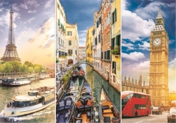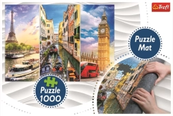 Alles wat je nodig hebt om te puzzelen, zit in één doos. De set combineert een esthetisch aantrekkelijke collage van de steden parijs–venetië–londen met een functionele rolbare onderlegger die ruimte bespaart en zowel begonnen als voltooide puzzels beschermt. Op de onderlegger staan duidelijk de contouren voor het leggen van TREFL-puzzels in de formaten 500, 500 panorama, 1000 en 1500 stukjes, zodat je altijd precies weet waar je het beeld moet plaatsen.