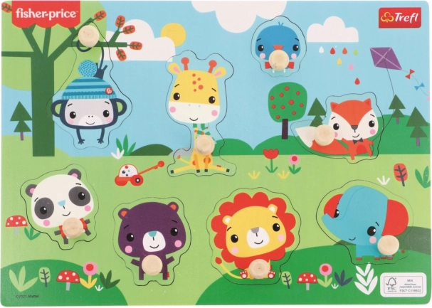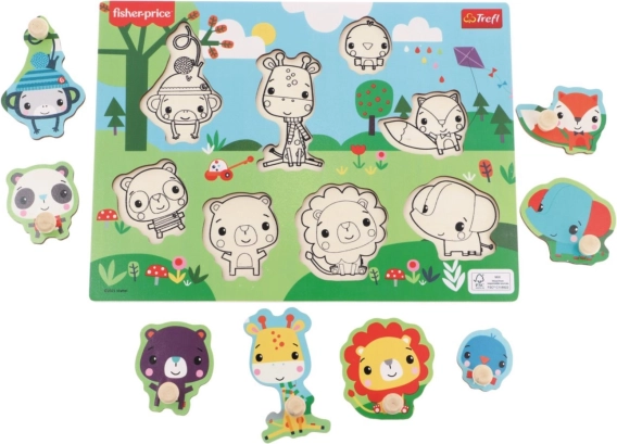 Ontdek de eerste puzzel die kinderen spelenderwijs vormen en dieren leert herkennen. De houten inlegpuzzel met wilde dieren van FISHER-PRICE is ontworpen voor kleine handjes – elk stukje heeft een praktische knop voor gemakkelijk vastpakken.