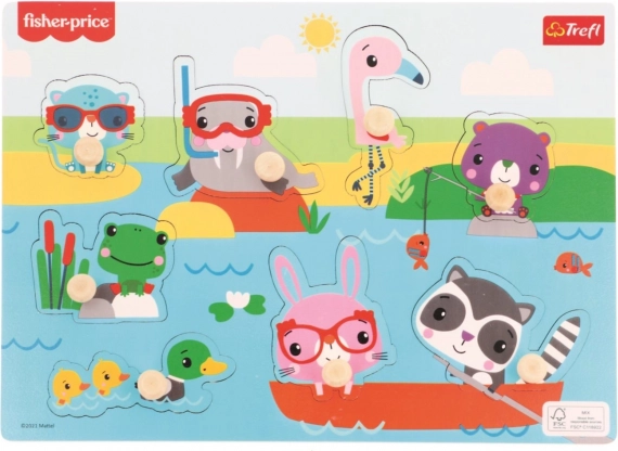 De houten puzzel van Fisher-Price is ideaal voor jonge kinderen die graag spelen en tegelijkertijd leren. Het bevat acht stukjes met knoppen die perfect in kleine handjes passen en gemakkelijk te hanteren zijn.