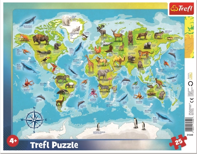 Ga op een avontuurlijke reis rond de wereld met deze boeiende puzzel van TREFL. De afbeelding bevat verschillende continenten en dieren die in elke regio leven, en de namen van de dieren zijn vermeld in het Engels en het Pools op de puzzel. De puzzel is speciaal ontworpen voor kinderen vanaf 4 jaar om hun creativiteit en fijne motoriek te stimuleren.