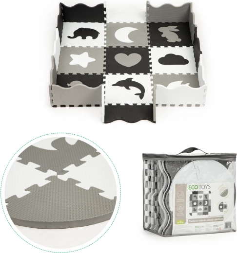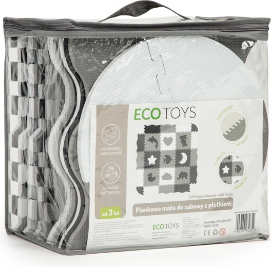 ECOTOYS schuimmat biedt een veilige en comfortabele omgeving voor het spelen van uw kind. Gemaakt van gecertificeerd EVA-materiaal en bestaande uit 25 delen, transformeert deze mat de vloer in een knusse en beschermde plek om te spelen of om te leren lopen.