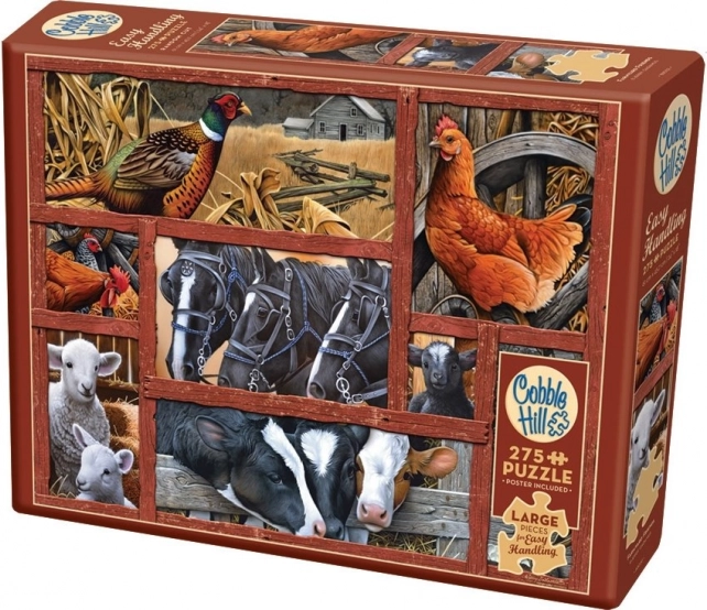 Het motief vrienden op de boerderij zal liefhebbers van het platteland en dieren bekoren en zorgt voor een gezellige en kleurrijke atmosfeer in huis. Ervaar de kwaliteit van COBBLE HILL en ontdek hoe prettig puzzelen kan zijn met doordacht ontworpen stukjes en een handig voorbeeld.