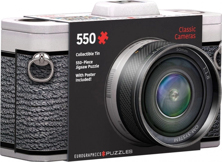 Stijlvolle puzzel in een blikken doos in de vorm van een klassieke camera – perfect voor verzamelaars en puzzelliefhebbers. Bevat 550 stukjes met speciale vormen, een losse voorbeeldposter en meet na het leggen ongeveer 48 × 33 cm. De afneembare deksel verandert het blik in een originele decoratie.