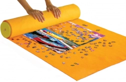 Deze gele oprolbare puzzelmat is ideaal voor puzzelliefhebbers die hun onafgemaakte werk veilig willen bewaren of vervoeren. Geschikt voor puzzels tot 2000 stukjes.