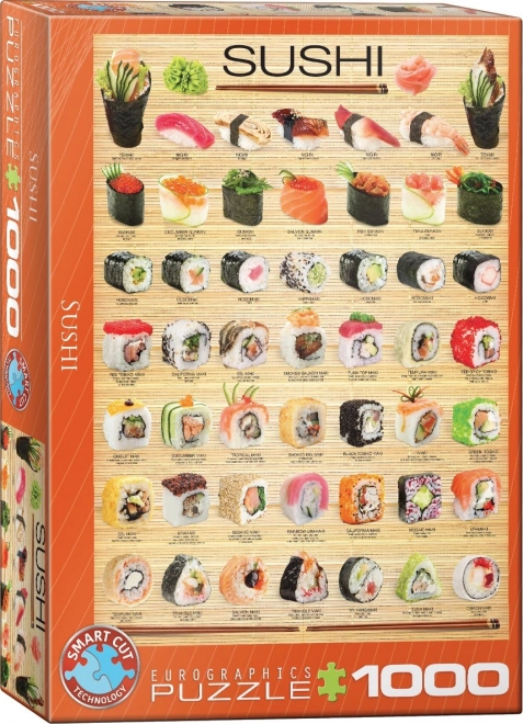 Geniet van de uitdaging van het puzzelen met EUROGRAPHICS Puzzel Sushi, dat niet alleen een prachtig motief biedt, maar ook uniek gevormde stukjes die de moeilijkheid vergroten.