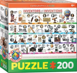 Ontdek de wereld van pioniers met de Eurographics-kindpuzzel Grote uitvindingen met 200 stukjes. Een leuke én educatieve legpuzzel die de belangrijkste uitvindingen en uitvinders presenteert, van Gutenberg tot de mobiele telefoon. Ideaal voor kinderen vanaf 6 jaar, die zo motoriek, geduld en kennis trainen. De teksten op de puzzel zijn in 4 talen en het formaat van de gelegde puzzel is 48,26 × 33 cm.