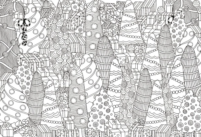 EUROGRAPHICS Color Me Puzzle biedt een unieke combinatie van puzzelen en ontspannend inkleuren. Eerst leg je het zwart-witbeeld met een motief van kerstboompjes, daarna geef je het een persoonlijk kleuraccent. De afgewerkte en ingekleurde puzzel bevestig je eenvoudig aan de muur met de meegeleverde set – zo krijg je een stijlvolle kerstdecoratie.