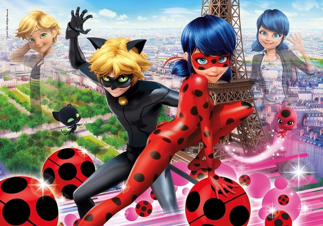 Puzzel Miraculous: Ladybug en Kat Noir in Parijs 104 stukjes