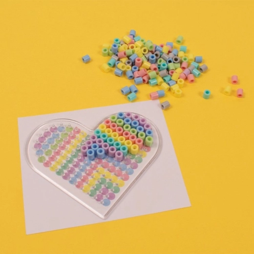 Met deze transparante mat in de vorm van een hart van PLAYBOX kun je genieten van creatief plezier bij het leggen en creëren met strijkkralen.