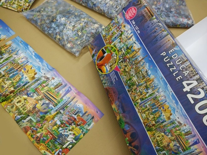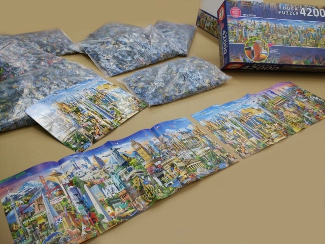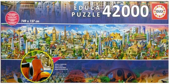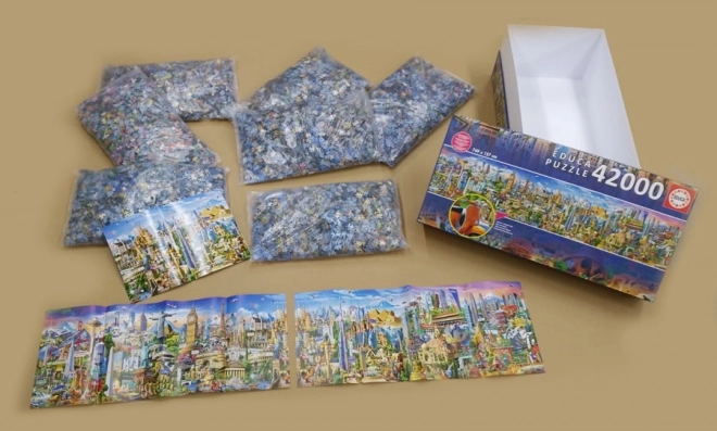 Stel de grootste puzzel ter wereld samen met 42.000 stukjes van Educa. Bevat bekende bezienswaardigheden en wereldwonderen, ideaal voor liefhebbers van uitdagingen en prachtige afbeeldingen.