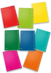 Op het eerste binnenblad vind je een praktisch etiket om vak, naam, school en adres in te vullen. De schriften worden geleverd in een mix van kleuren afhankelijk van de actuele voorraad (illustratieve foto).