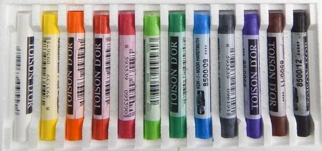 Set van droge poederpastels in 12 intense kleuren voor creatief tekenen en schaduwen. Soepel aan te brengen, makkelijk te vervagen en tinten te mengen en ideaal voor gebruik op gestructureerd, getint papier — deze krijtjes zijn een perfecte keuze voor zowel kunstenaars als beginners.