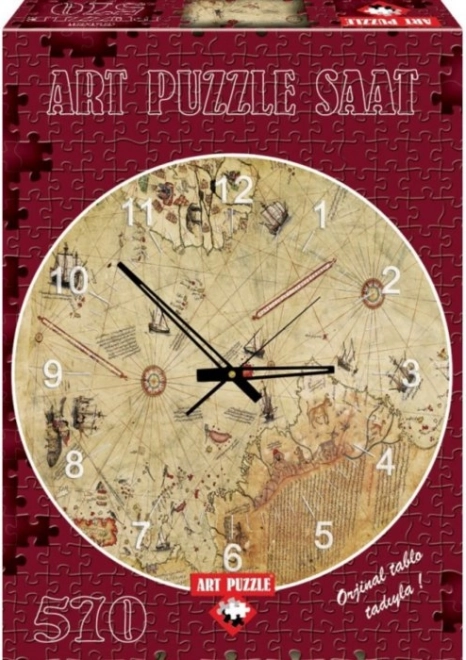Geniet van uren puzzelplezier en eindig met een stijlvolle woondecoratie. De ronde puzzel met 570 stukjes en het gedetailleerde motief van de kaart van kapitein Reise verandert na verlijming en plaatsing op de ondergrond in een design klok die elk interieur nieuw leven inblaast.