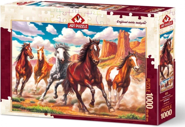 Geniet van ontspanning en plezier met een puzzel met het motief van wilde paarden in een schilderachtige vallei. De puzzel met 1000 stukjes biedt hoogwaardige afwerking, preciese uitsnijdingen en een eindformaat van ca. 68 × 48 cm. Fabrikant ART PUZZLE biedt bovendien de service verzending van een ontbrekend stukje.