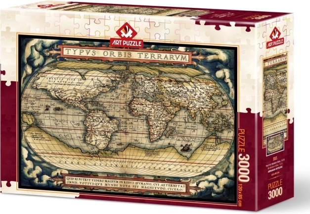 Ontdek een fascinerend historisch motief met deze puzzel van 3000 stukjes, die de eerste moderne atlas uit 1570 afbeeldt. De premium kwaliteit van ART PUZZLE en het grote formaat na het leggen van ca. 120 × 85 cm garanderen uren puzzelplezier en een prachtig resultaat. De fabrikant biedt bovendien een service voor het nasturen van ontbrekende stukjes bij overlegging van de productiebatch.