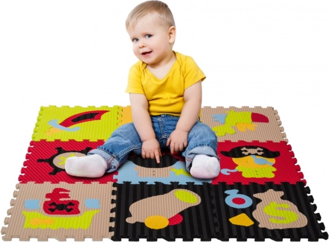 De mat dient tegelijk als educatief speelgoed: kinderen oefenen de fijne motoriek bij het plaatsen van de stukjes, ontwikkelen hun verbeeldingskracht met piratenverhalen en ontdekken verschillende texturen voor een rijkere sensorische ervaring. De samenstelling is veilig – vrij van ftalaten, cadmium, ammoniak en formaldehyde.