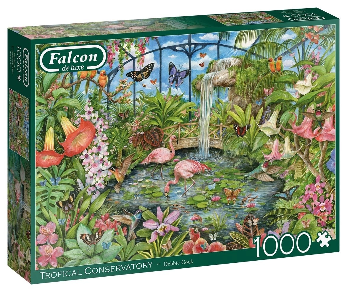 Beleef uren plezier en ontspanning met de premium FALCON-puzzel met een kleurrijke tropische kas. Het motief vol planten, bloemen en verfijnde details biedt zowel visueel genoegen als een uitdaging voor puzzelliefhebbers.