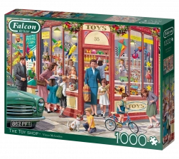 Ontdek de magie van puzzelen met de puzzel 'De Speelgoedwinkel' van Falcon de luxe, die traditionele scènes van speelgoedwinkels op de straathoek brengt. Een illustratie van Victor McLindon brengt je terug naar je jeugd met gezinnen die de speelgoedvitrine bewonderen.