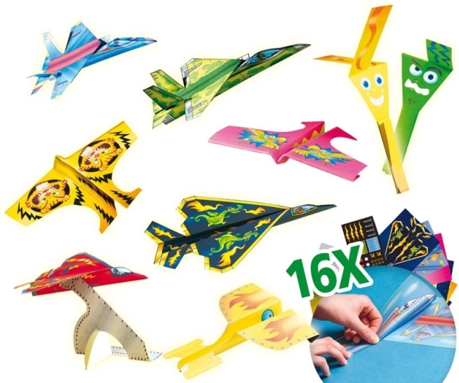 Papieren vellen voor het maken van tot 16 vliegtuigen, stickers om te versieren