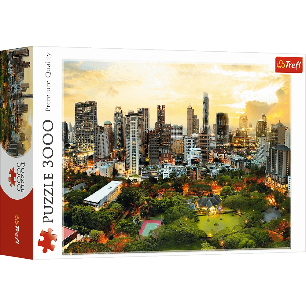 Deze puzzel van 3000 stukjes biedt urenlang plezier terwijl u geniet van het prachtige uitzicht op de zonsondergang boven Bangkok. Het leggen van dit prachtige kunstwerk kan een geweldige manier zijn om te ontspannen en uw concentratie te verbeteren.