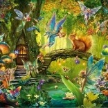 Vang de magie van het bos met de prachtige Schmidt puzzel Feeën in het bos. Deze puzzel brengt fans van fantasiewerelden een betoverend boslandschap vol kleurrijke feeën, eekhoorns en sprookjesachtige paddenstoelen.