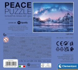Geniet van momenten van rust met de CLEMENTONI-puzzel Peace Collection Light Blue. De premium stukjes van hoogwaardig, dik karton passen perfect in elkaar en het motief van een serene Scandinavische natuur met sprankelende hemel schept de ideale sfeer voor meditatief puzzelen.