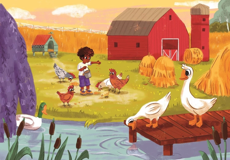 Ontdek de kleurrijke wereld van de boerderij met drie afzonderlijke puzzels van telkens 48 stukjes. Tijdens het leggen trainen kinderen hun fijne motoriek, concentratie en visuele waarneming, terwijl ze dieren en het leven op het platteland leren kennen. Hoogwaardige druk en stevige stukjes garanderen keer op keer puzzelplezier.