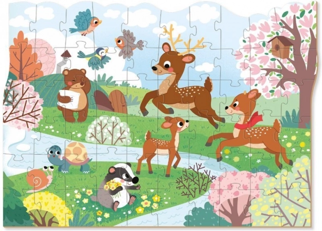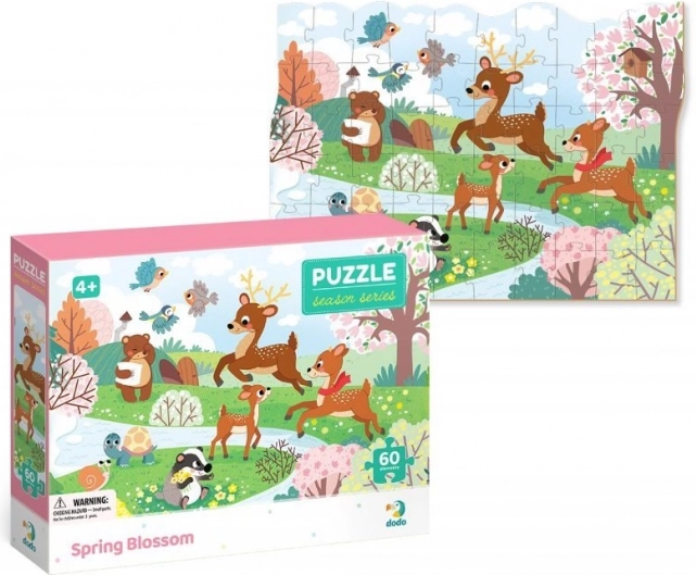 Leuke DODO-kindpuzzel met het thema van de ontluikende lente, met 60 stukjes, prachtige illustraties en een praktische omtrekrand. De voltooide afbeelding meet 32 × 23 cm en kan aangesloten worden op andere scènes uit de Seizoenen-serie. Ideaal voor kinderen vanaf 4 jaar.