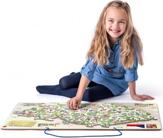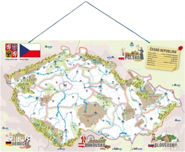 Ontdek een leuke en educatieve hulp voor kinderen – de 3-in-1 magnetische kaart van de Tsjechische Republiek, die leerzame puzzels, een schools hulpmiddel en een gezelschapsspel combineert. Kinderen leren spelenderwijs de districten en hun steden kennen, ontdekken rivieren en gebergten en begrijpen dankzij de illustraties gemakkelijk wat kenmerkend is voor de afzonderlijke gebieden. Ook inbegrepen is een leuk spel dat reactievermogen en waarneming traint.