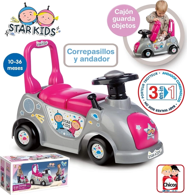 Zoek je het eerste wagentje voor je kindje? De 3-in-1 loopfiets Star Kids roze groeit met je kind mee – eerst helpt hij als loopwagen bij de eerste stapjes en daarna als stabiele loopfiets voor het ontwikkelen van evenwicht en zekerheid in beweging. Dankzij de compacte afmetingen is hij perfect voor in huis en tijdens wandelingen.