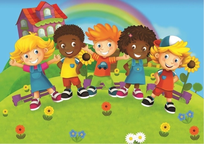 Ontdek een leuk duo puzzels met een kinderthema – ideaal om samen te leggen en de fijne motoriek te ontwikkelen. De set bevat twee afbeeldingen van dezelfde grootte maar met verschillende moeilijkheidsgraden – 12 stukjes en 24 stukjes. Elke gelegde puzzel heeft een afmeting van ongeveer 34 × 24 cm.