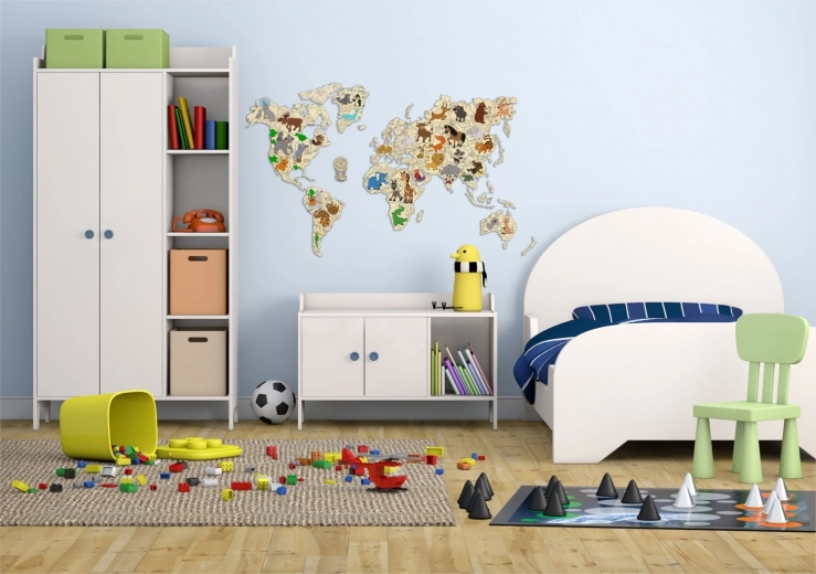 De houten dierenwereldkaart is de ideale oplossing voor reisliefhebbers en ook als educatief hulpmiddel voor kinderen. Het helpt bij het ontwikkelen van interesse in geografie en zoölogie en stelt kinderen in staat om bezochte plaatsen met familie te schilderen met acrylverf.