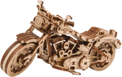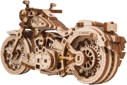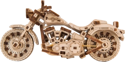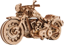 De houten mechanische bouwset van de meest indrukwekkende motor Cruiser V-Twin wacht op je! Dankzij het unieke design en de verrassende details van dit model wordt je tijdsbesteding vol plezier en geweldige emoties. Je kunt sturen met het voorwiel. De motor kan met het traagheidsmechanisme tot 1 meter rijden. Je zult enthousiast zijn over de bewegende cilinders bij het draaien van het achterwiel en ook over de schokdempers in de voorvork. De Cruiser V-Twin is uitgerust met remschijven en rubberen wielen.