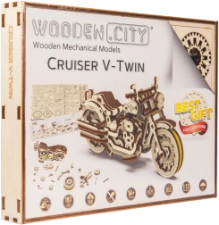 In het model zijn details van een echte motor vertegenwoordigd: - functionele standaard, - richtingaanwijzer, - kentekenplaat, - reflectoren, - achteruitkijkspiegels. De 3D-puzzel WOODEN CITY Cruiser V-Twin is het beste cadeau voor elke motorliefhebber.