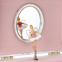 Na het openen van het deksel begint de ballerina voor het ovale spiegeltje te draaien en klinkt de zachte melodie Het Zwanenmeer – een betoverend ritueel bij elke keer dat je je sieraden opbergt.