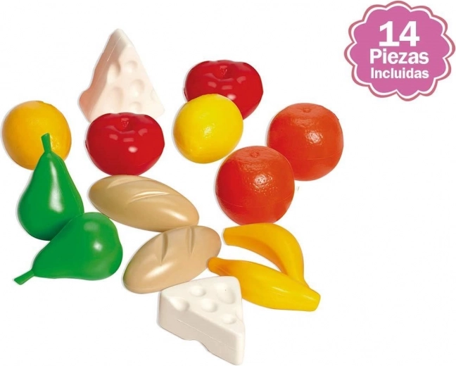 Bevat plastic etenswaren, waaronder fruit (peren, appels, bananen) en andere items voor gevarieerd spel.