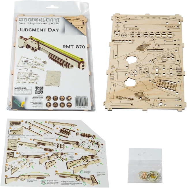 Bouw een authentiek wapensmodel dat elastiekjes schiet en beschikt over verfijnde details zoals een veiligheidspal en magazijn. Het model is eenvoudig te monteren dankzij de milieuvriendelijke houten materialen en er is geen lijm of gereedschap voor nodig.