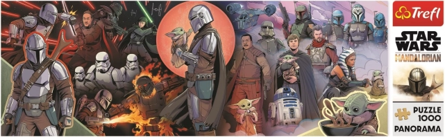 Geniet van plezier en spanning met de panoramische puzzel The Mandalorian: Avonturen, die 1000 stukjes bevat en ideaal is voor fans van de serie.