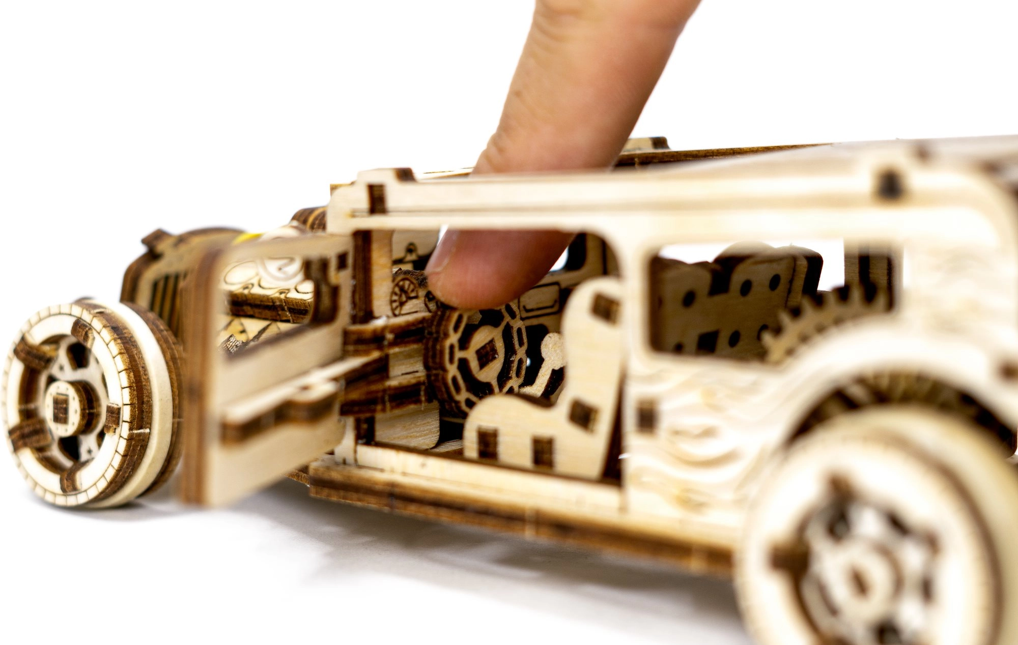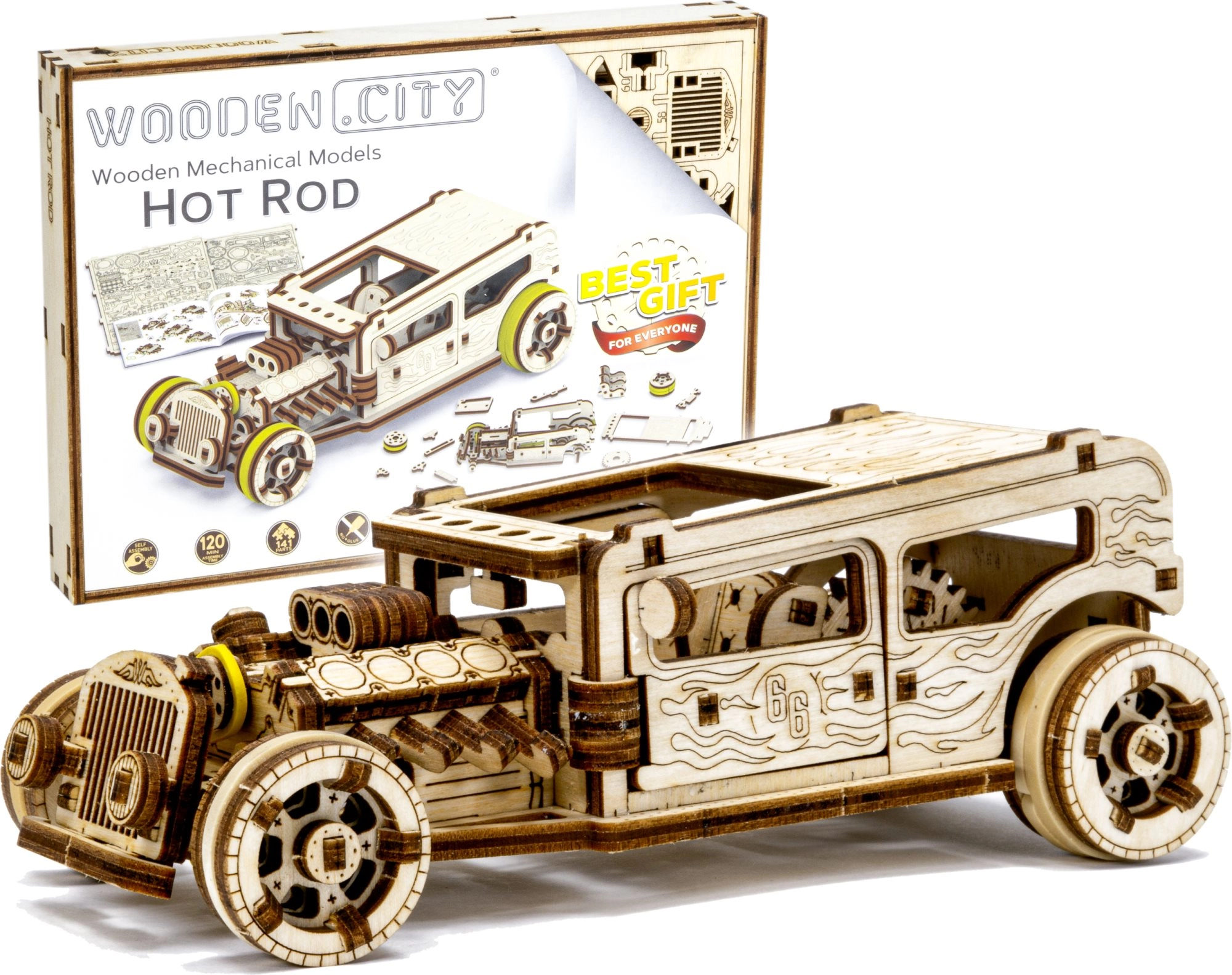 - houten 3D-puzzel – mechanisch model Hot Rod