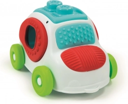 Het deksel van het autootje met openingen dient als sorteervorm. Kinderen leren basisvormen en kleuren herkennen en trainen de oog-handcoördinatie.