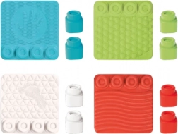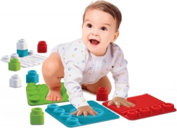 Elke mat heeft vier posities voor blokken, zodat kinderen kleurrijke combinaties kunnen maken, stapelen, omgooien en opnieuw bouwen. Het zachte, geteste en niet-schadelijke materiaal is veilig voor kinderlijke ontdekkingen en eenvoudig te onderhouden: matten en blokken zijn vaatwasmachinebestendig tot 30 °C.