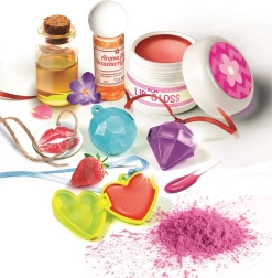 Ontdek de schoonheid van wetenschap en cosmetica in één slimme set. Het kinderlab voor het maken van lippenbalsems begeleidt je in eenvoudige stappen: van het mengen van de verzachtende wasbasis en het toevoegen van poederkleurstof tot het finetunen van de aardbeiengeur. Dankzij de geïllustreerde handleiding is het proces overzichtelijk en leuk.