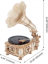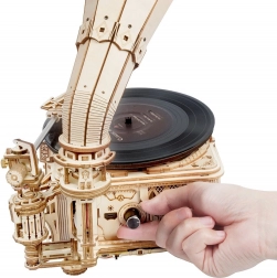 De verpakking bevat een vinylplaat met drie melodieën: The Merry Gent (0:47), Memory Of A Dance (2:07), en The Giant Killers (1:27). Het kan 7" en 10" vinylplaten afspelen. De onderdelen zijn lasergesneden uit multiplex en de montage volgt de bijgevoegde handleiding.