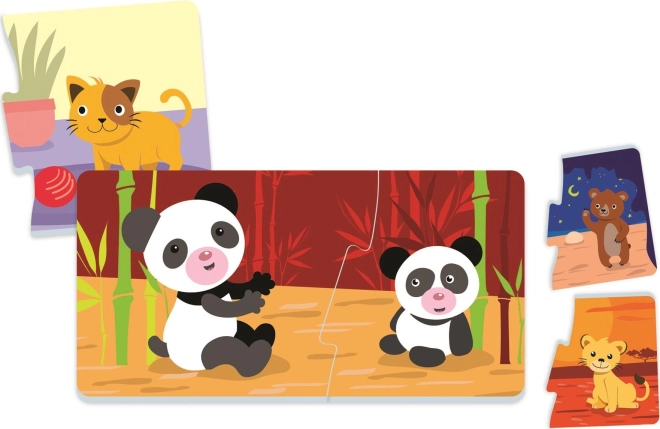 Ontdek een leuke manier waarop kinderen dieren en hun jongen leren herkennen. Elk mini-puzzel bestaat uit twee grote, gemakkelijk vast te houden stukjes die het kind intuïtief met elkaar verbindt. Ideaal als eerste puzzel dankzij de stevige afwerking en heldere illustraties.